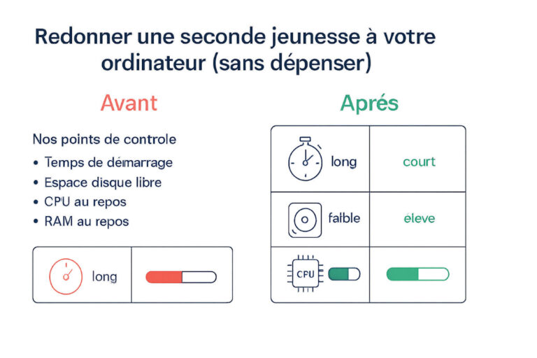Quand on se retrouve face à un ordinateur lent, ce n’est pas forcément la fin de sa vie utile. Dans la majorité des cas, la baisse de performances vient d’une accumulation de petits facteurs : trop d’apps au démarrage, espace disque saturé, mises à jour en retard, indexations interminables, extensions de navigateur envahissantes, ou encore